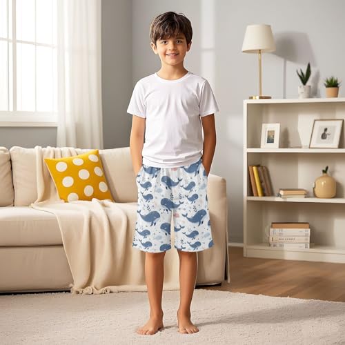 Whales on A Light Background Sleep Shorts Summer Pajama Shorts Elastic Waist Sleep Bottoms with Pockets 6-14 Years 4
