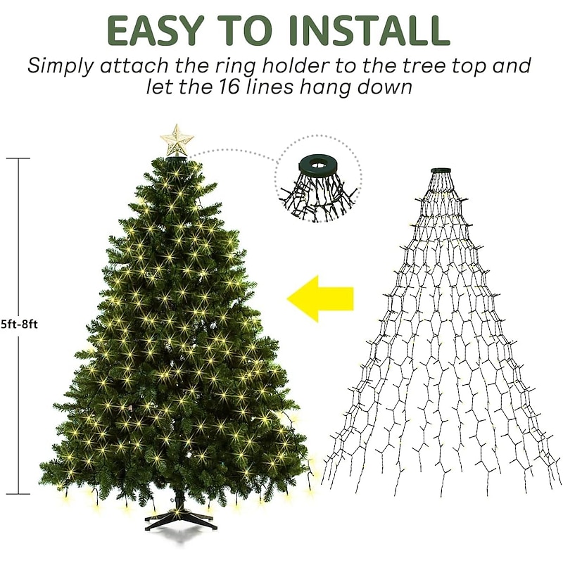 Why Choose String Lights LED Christmas Tree with Ring 400LED Christmas Tree Lights with 16 Strands 2m Christmas Tree String Lights Christmas Lights String Lights for 150cm-240cm Tree?