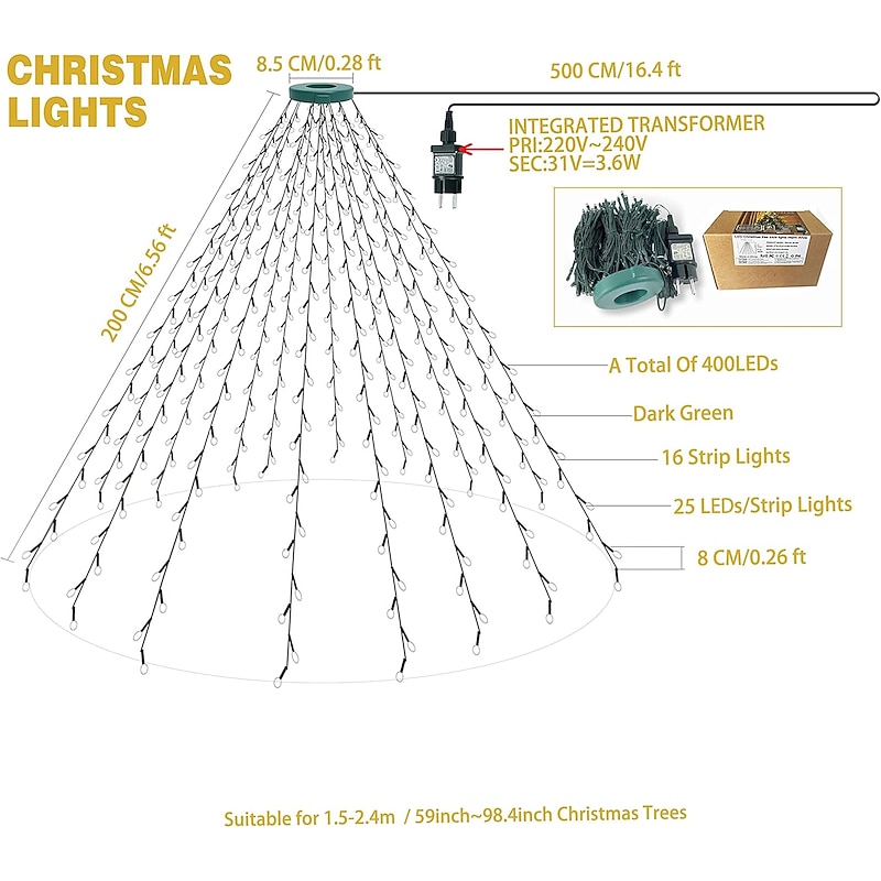This String Lights LED Christmas Tree with Ring 400LED Christmas Tree Lights with 16 Strands 2m Christmas Tree String Lights Christmas Lights String Lights for 150cm-240cm Tree combines elegant design with practical functionality. Every detail has been carefully considered to ensure you get the top possible experience. The top-grade construction means this product will serve you well for years to come.