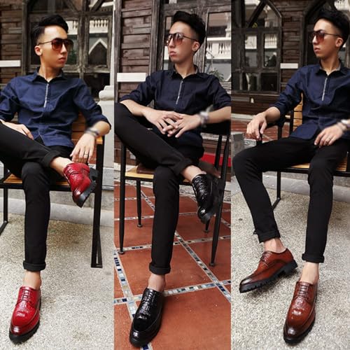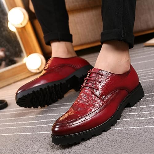 Men's Leather Lace-up Platform Casual Dressy Oxfords,Fashion Round Toe Brogue Business Formal Shoes for Party Wedding Driving Walking Shoes 6