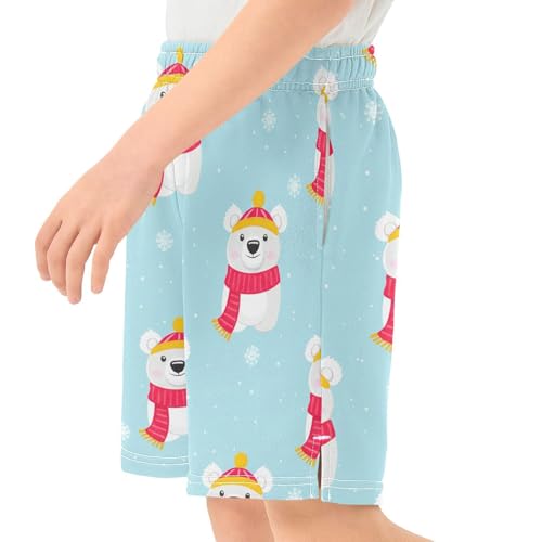 Cute Bears Wearing Scarves Athletic Shorts with Zipper Pockets, Youth Boys Athletic Running Shorts for Summer 2