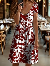 Why Choose Women's Midi Dress T Shirt Dress Tee Dress Sundress A Line Dress Vacation Casual Beach Beach Regular Fit Floral Graphic Leaf Short Sleeve V Neck Black And White Yellow Red Blue Summer Spring?