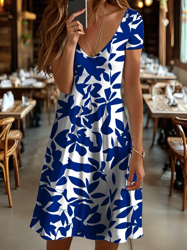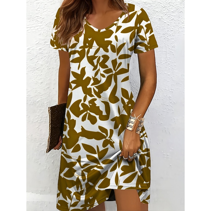 This Women's Midi Dress T Shirt Dress Tee Dress Sundress A Line Dress Vacation Casual Beach Beach Regular Fit Floral Graphic Leaf Short Sleeve V Neck Black And White Yellow Red Blue Summer Spring combines elegant design with practical functionality. Every detail has been carefully considered to ensure you get the supreme possible experience. The supreme construction means this product will serve you well for years to come.
