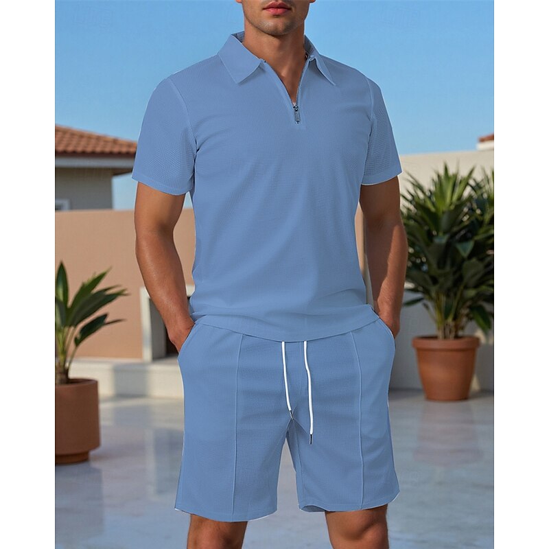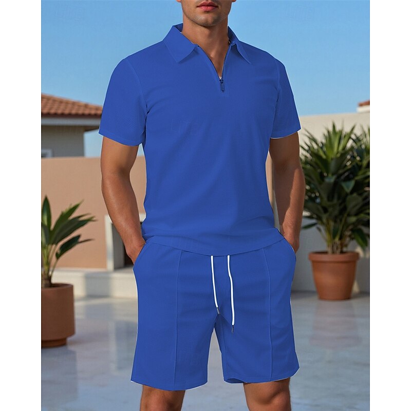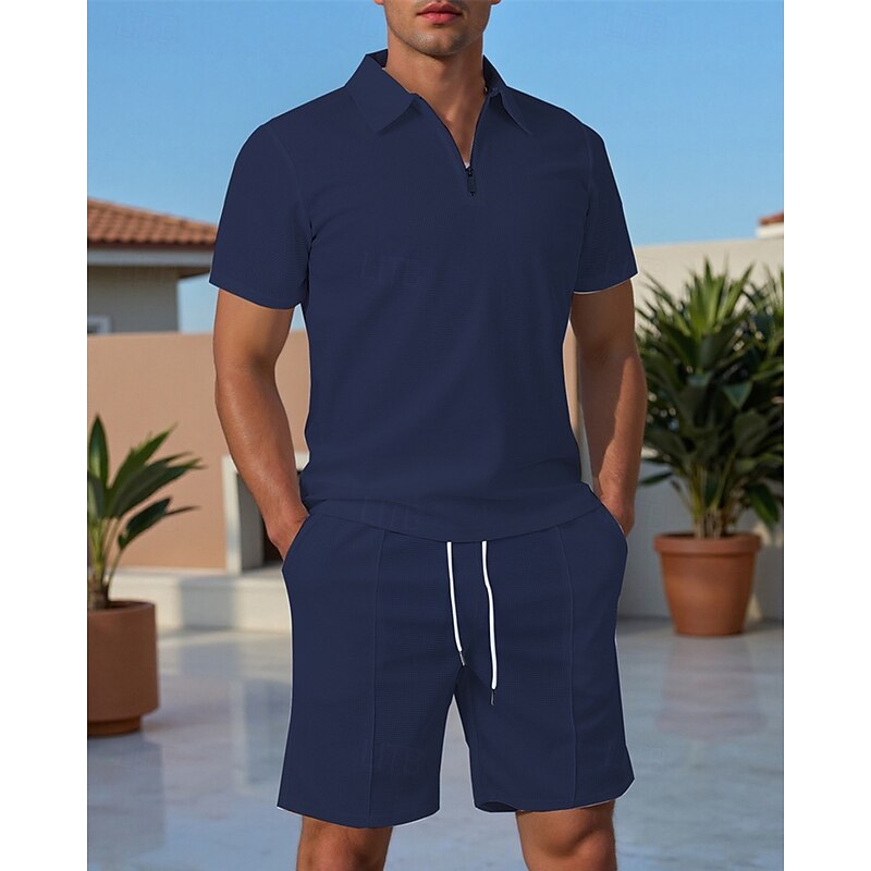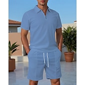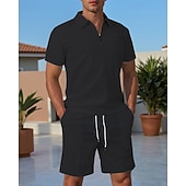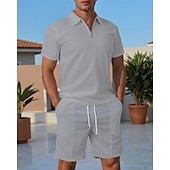 More information about Men's Polo Shirts Zip Polo Outdoor Daily Wear Lapel Short Sleeve Fashion Hawaiian Plain 2 Piece Summer Regular Fit Black White Navy Blue Royal Blue Sky Blue Khaki Polo Shirts
