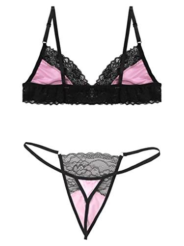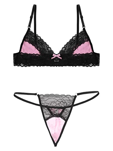 Why Choose Men's Sissy Satin Lace Trim Lingerie Set Wireless Bra Top Mini Crossdress Thong Nightwear?