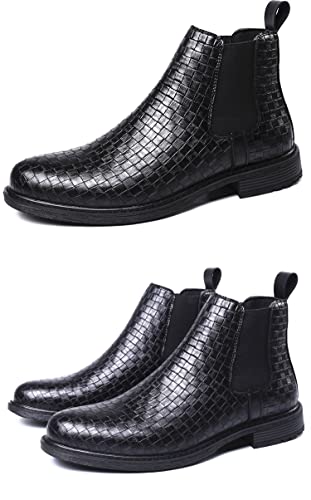 Men's Casual Ankle Boots Chelsea Boots, With woven texture wear-Resistant and Non-Slip Slip-on Leather Shoes, Suitable for Outdoor Parties and Offices 6